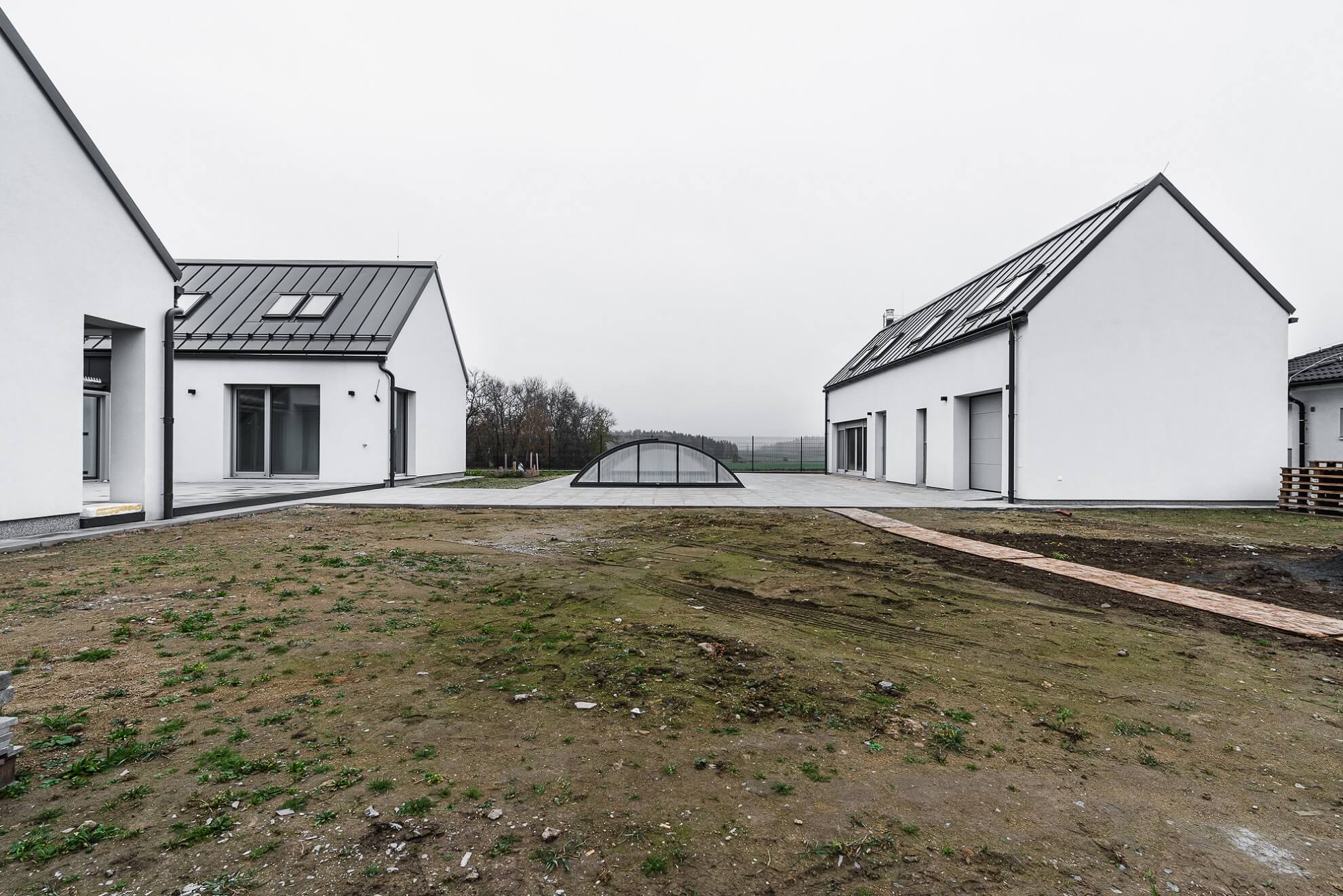 Autorem návrhu rodinného domu koncipovaného do tvaru písmene U je architektonické studio ML Designers. Stavba, jejíž součástí je i vybudování bazénu a kompletní oplocení pozemku, je v plném proudu, a dokončena by měla být v druhé polovině tohoto roku.