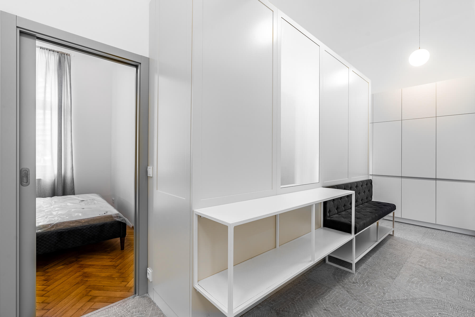 Zadáním investora byla rekonstrukce jednoho bytu na dvě samostatné bytové jednotky. Byt 3+1 se nachází v krásném starém činžovním domě a byl v původním, už poměrně zdevastovaném stavu.